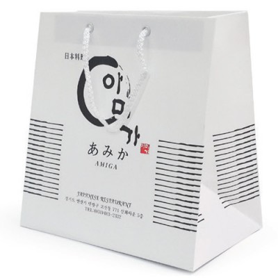 | 기타사항 | •기본수량 1,000개 (1BOX 200개) •규격 : 240x150x245(mm) •재질 : 140g 레쟈크/나일론끈 •인쇄 : 3도 •디자인 편집비 별도 |